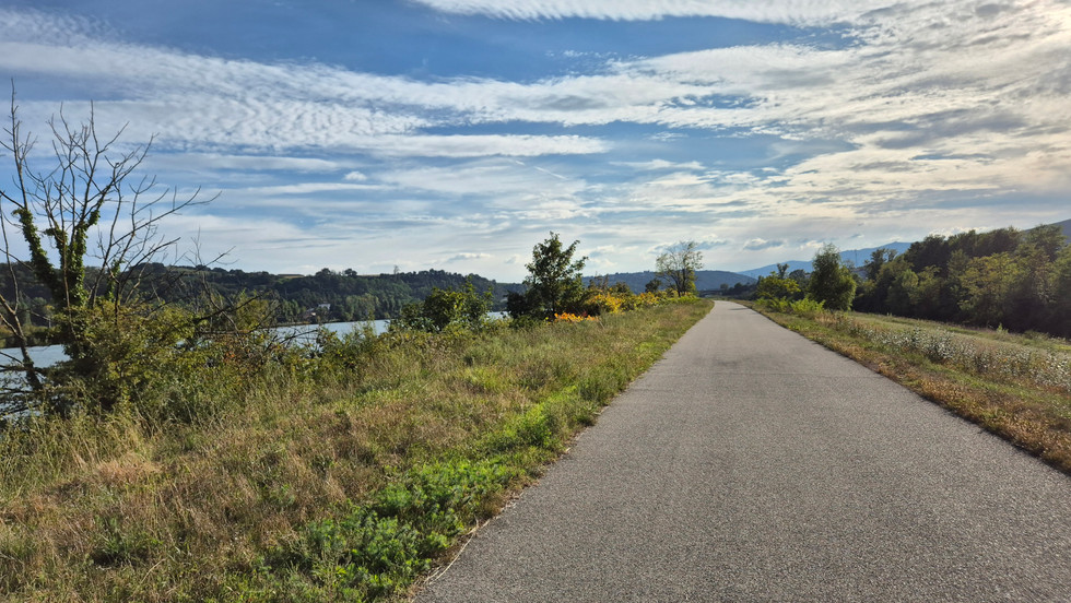 Viel Flussufer und schöne Velowege. Lyon lohnt eine Pause. Dafür sind die ca. 20 km danach nicht so lustig. Zuerst hat man Vorortsstrassen mit zeitweise ziemlich Autoverkehr und anschliessend einen "Itineraire provisoire" der eigentlich ein Singletrail ist. Mit meinem Gravelbike und 10 Kg Gepäck noch gerade so machbar. Für die meisten empfiehlt es sich, bis Ternay auf der Strasse zu bleiben (siehe Kartenausschnitt in der Bildergalerie)